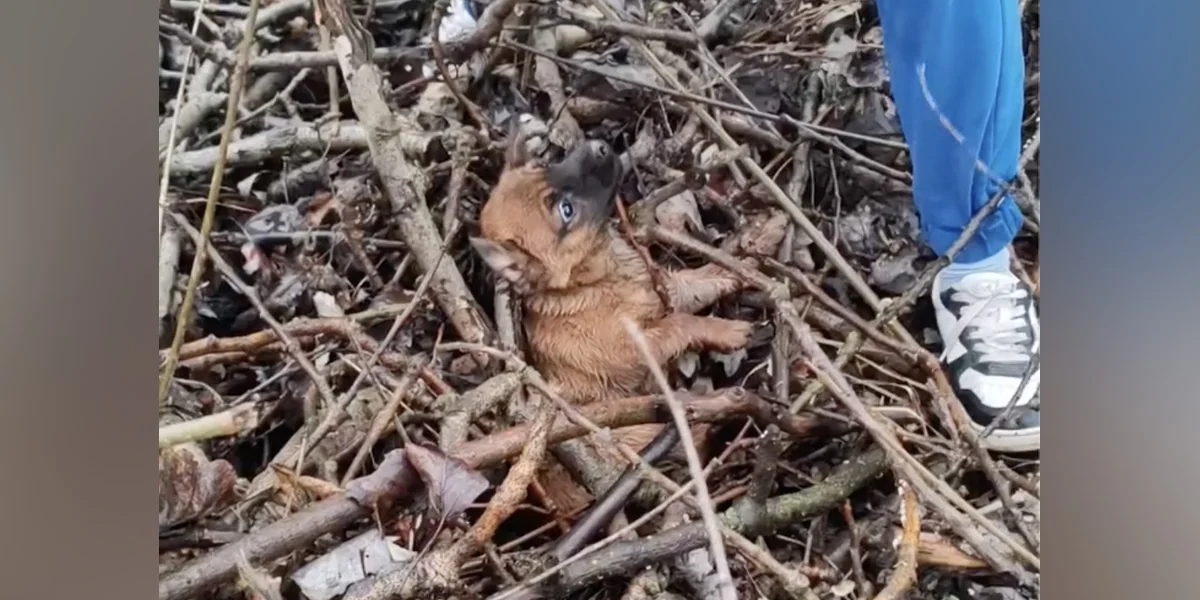 When Kelemen and a colleague tried to approach, the puppy panicked and ran. In her desperation, she became tangled in a heap of sticks and branches. That was where the rescuers finally reached her β trembling, trapped, and crying out in fear as they gently tried to help.