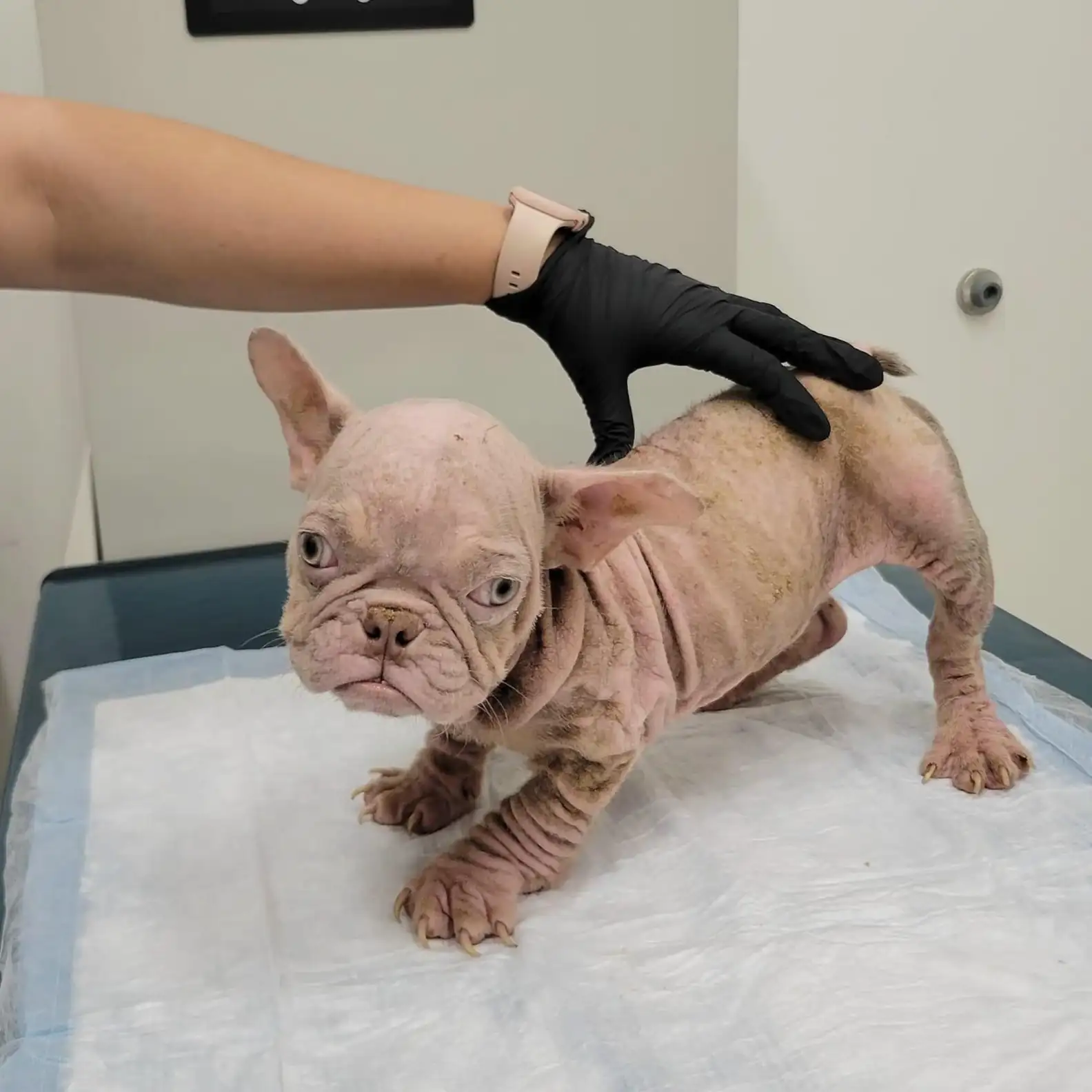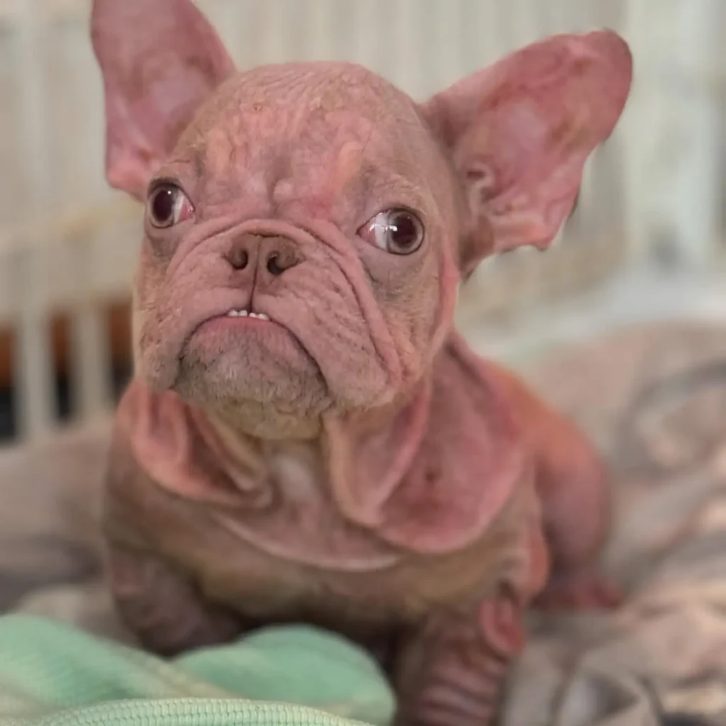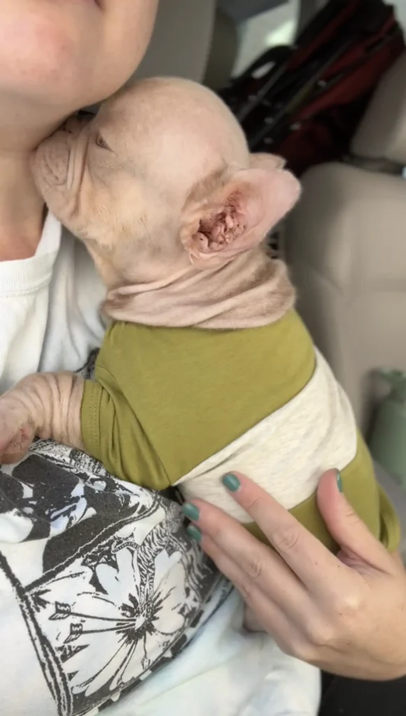 Last August, a photo of a tiny, unusual French bulldog named Harold caught the eye of foster mom Andrea. At just four months old, Harold was completely hairless with raw, pink skinβa result of severe neglect. Despite the challenges, Andrea was determined to help him heal.