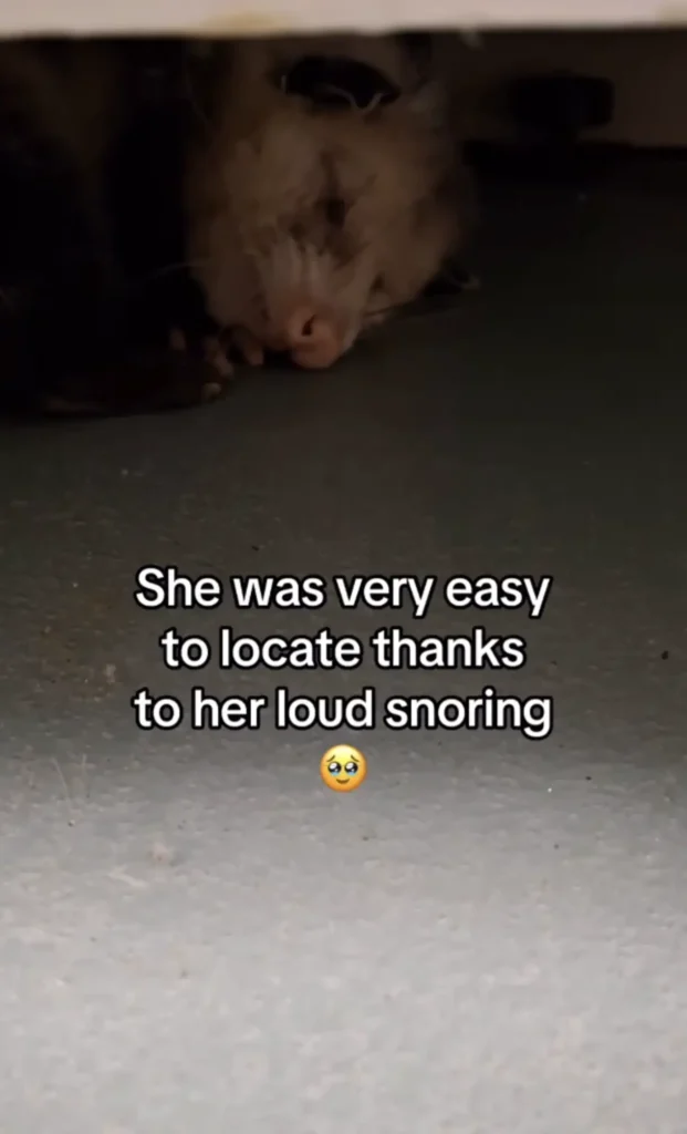 “Our opossum patient staged an impressive overnight escape,” the center wrote. “But thanks to her very loud snoring, she made it incredibly easy for us to find her hiding under the shift cage.”