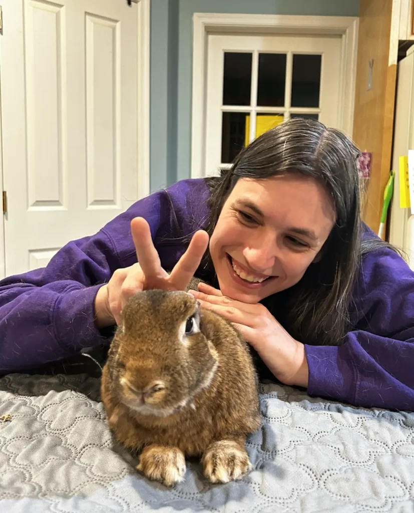 Even without his ears, Duncan remains feisty but affectionate. He has warmed up to baby bunnies in Healy’s care, earning the nickname “Uncle Duncan.” “He would just lay there, watching the babies play,” Healy said, “splayed out and completely relaxed.”