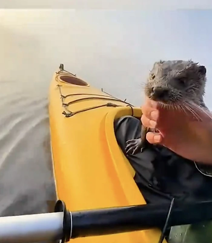 In Sweden, a young wild otter has never forgotten the person who helped her survive. Even after returning to her lake home, she still seeks him out β often hopping onto his kayak to relax and play.