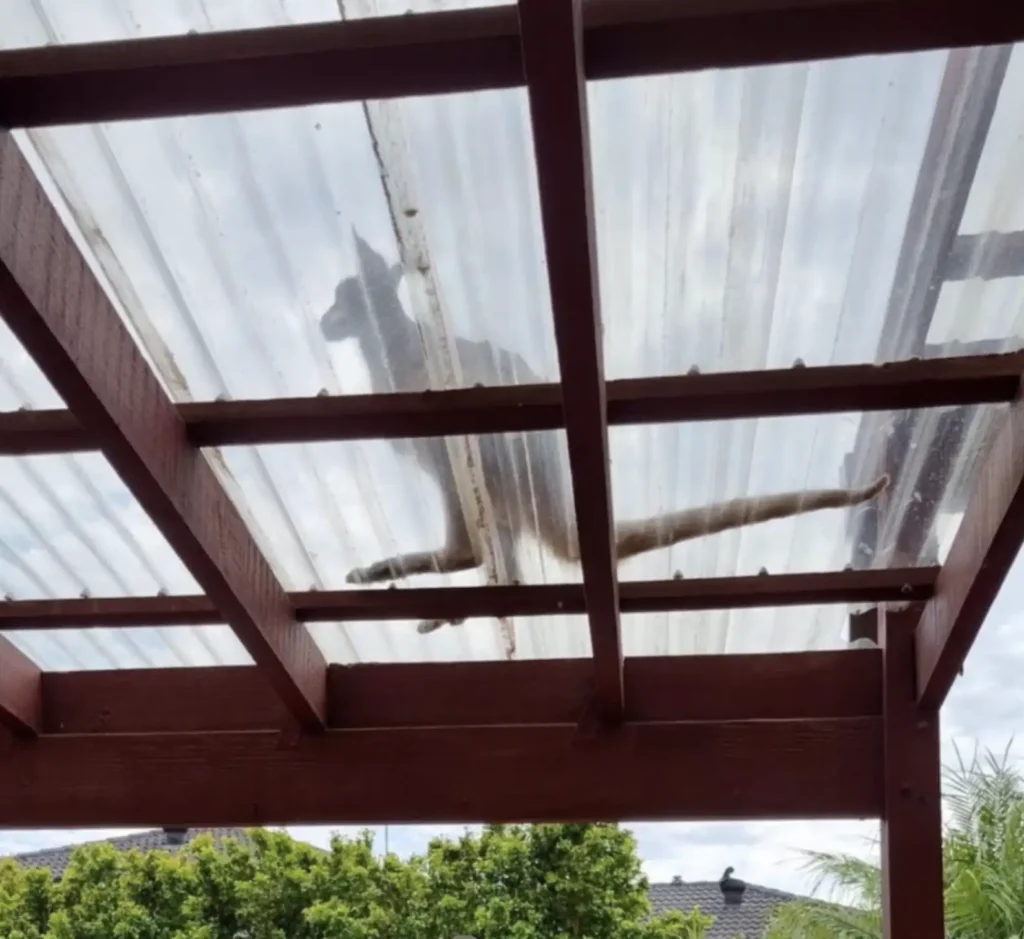 An Australian couple got an unexpected shock when loud rattling noises came from above their home. Curious and concerned, they hurried upstairs, looked out a window — and discovered an astonishing sight clinging to their roof.