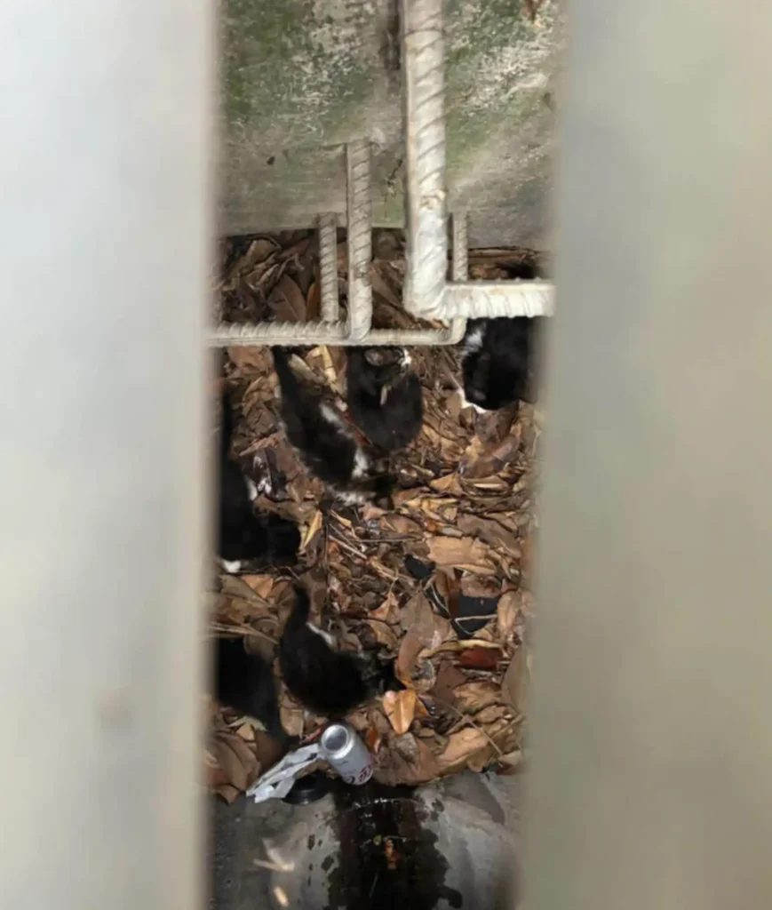 When neighbors peered inside the drain, they discovered the reason: deep below the street, tucked among leaves and debris, several tiny kittens were curled up together.