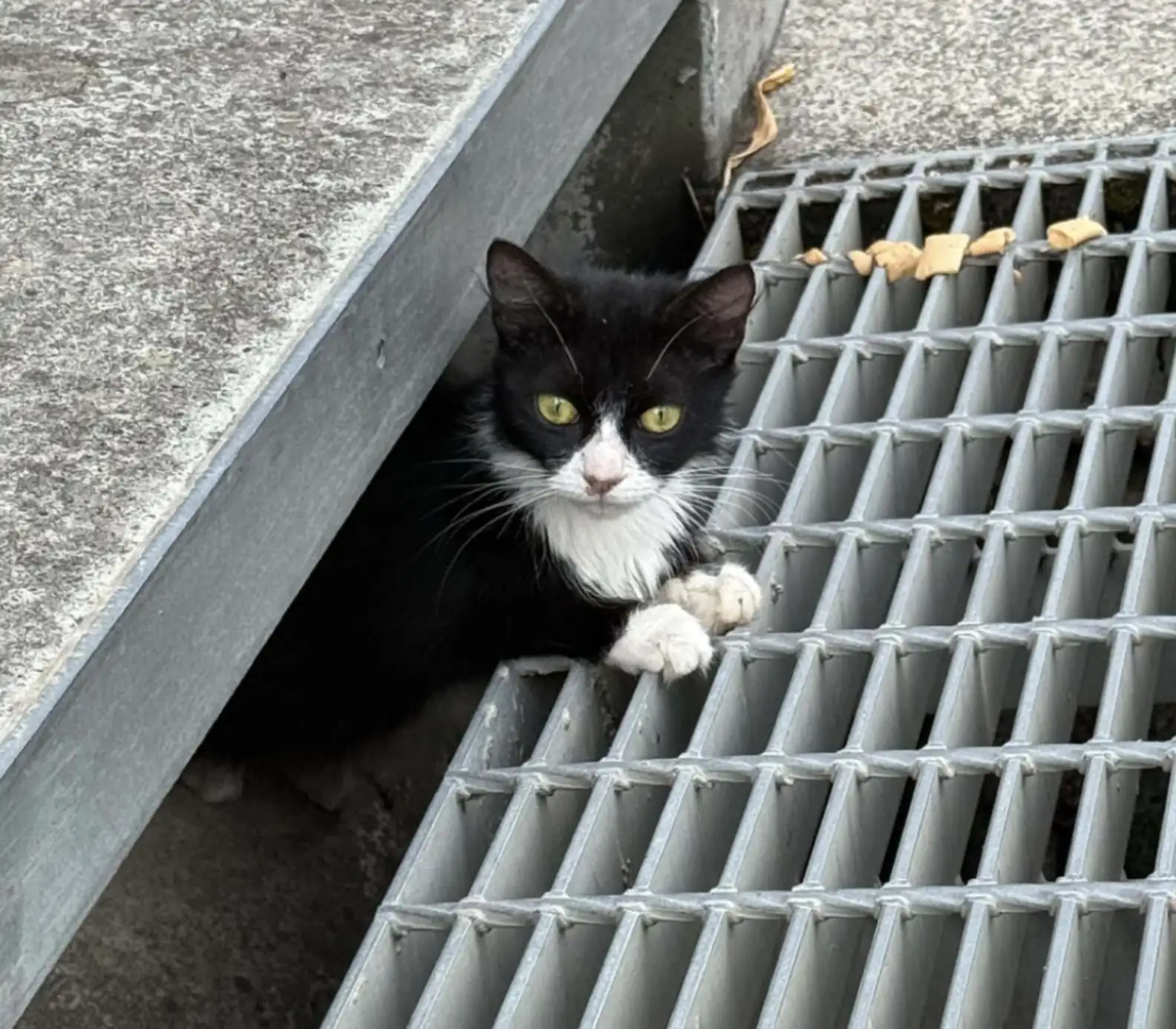 However, the rescue wasn’t straightforward. A standard cat trap wouldn’t fit inside the narrow drain. So instead, the team modified a possum trap to squeeze into the tight space.