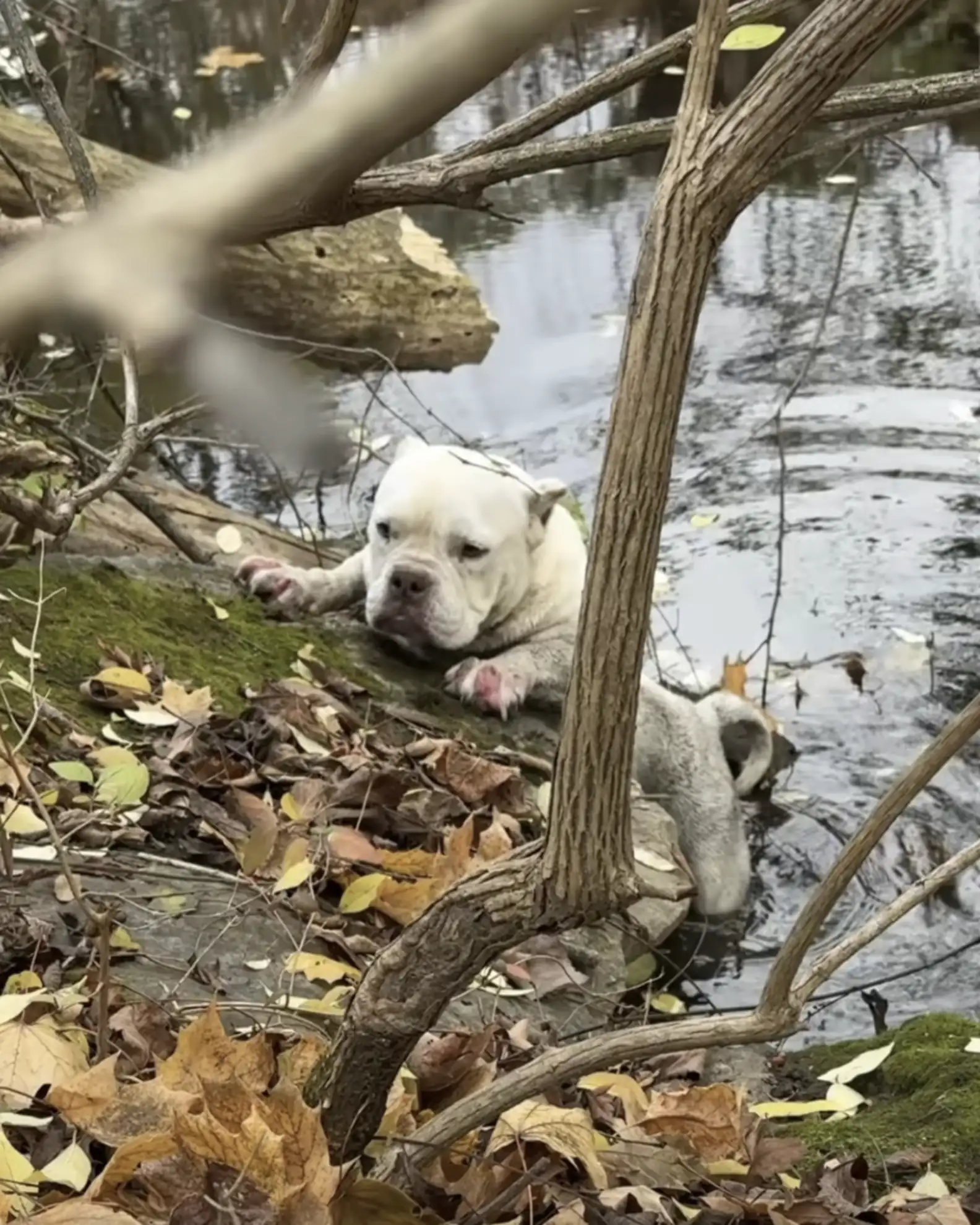 Earlier this month, two Good Samaritans driving through Exton, Pennsylvania, caught sight of a small dog racing across a busy highway. Alarmed, they immediately pulled to the side of the road and chased after her as she darted into the nearby woods. One of the women quickly grabbed a comforter from her car and laid it out along the edge of a creek, hoping to give the scared dog a safe place to land. Meanwhile, the other called 911 for help.