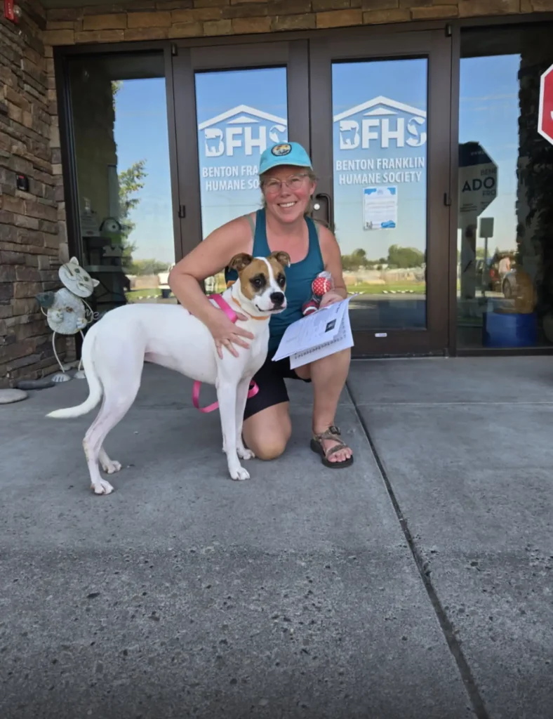 One early morning a few months back, staff at the Benton-Franklin Humane Society arrived to a heartbreaking sight: a young dog tied to the shelterโs back door. Curled up beside the air conditioning unit, she looked exhausted, confused, and utterly alone.