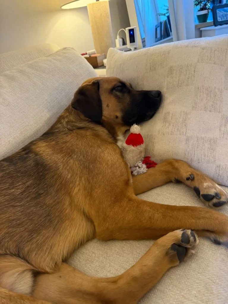 Visiting Isabel became part of Goose’s daily routine, and he always sought nothing more than hugs and attention. One evening, Isabel surprised him with a Christmas gift: a Santa Claus plush toy.