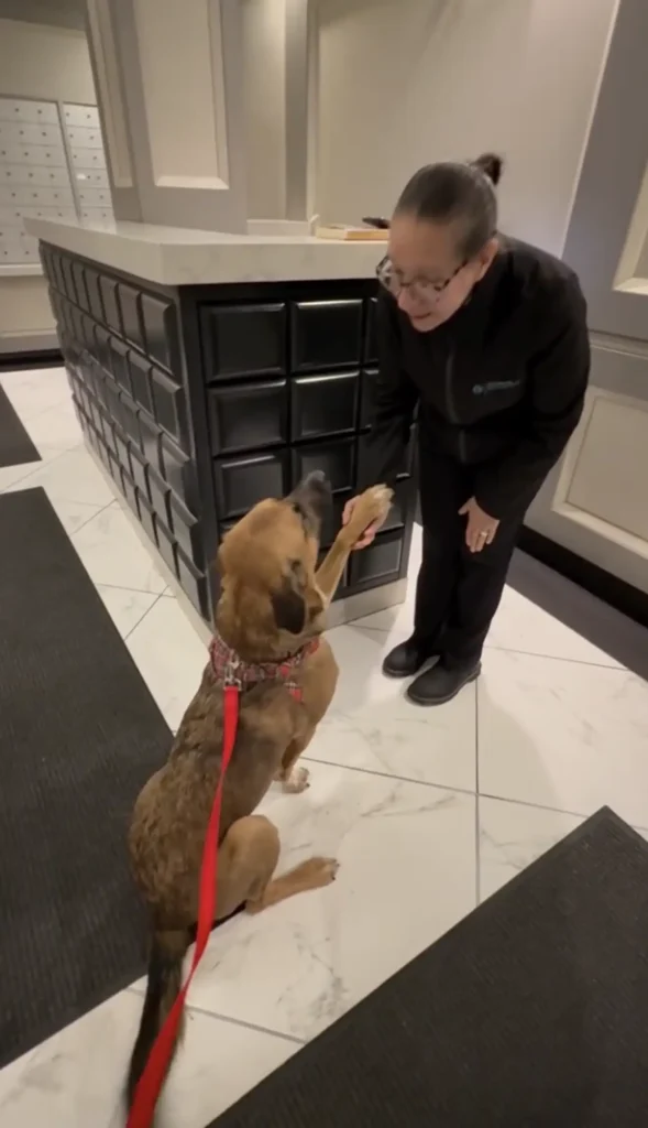 From that moment, Isabel became Goose’s favorite stop on their walks. The sweet boy wagged his tail wildly and eagerly greeted her every day, checking in each time they passed her building.
