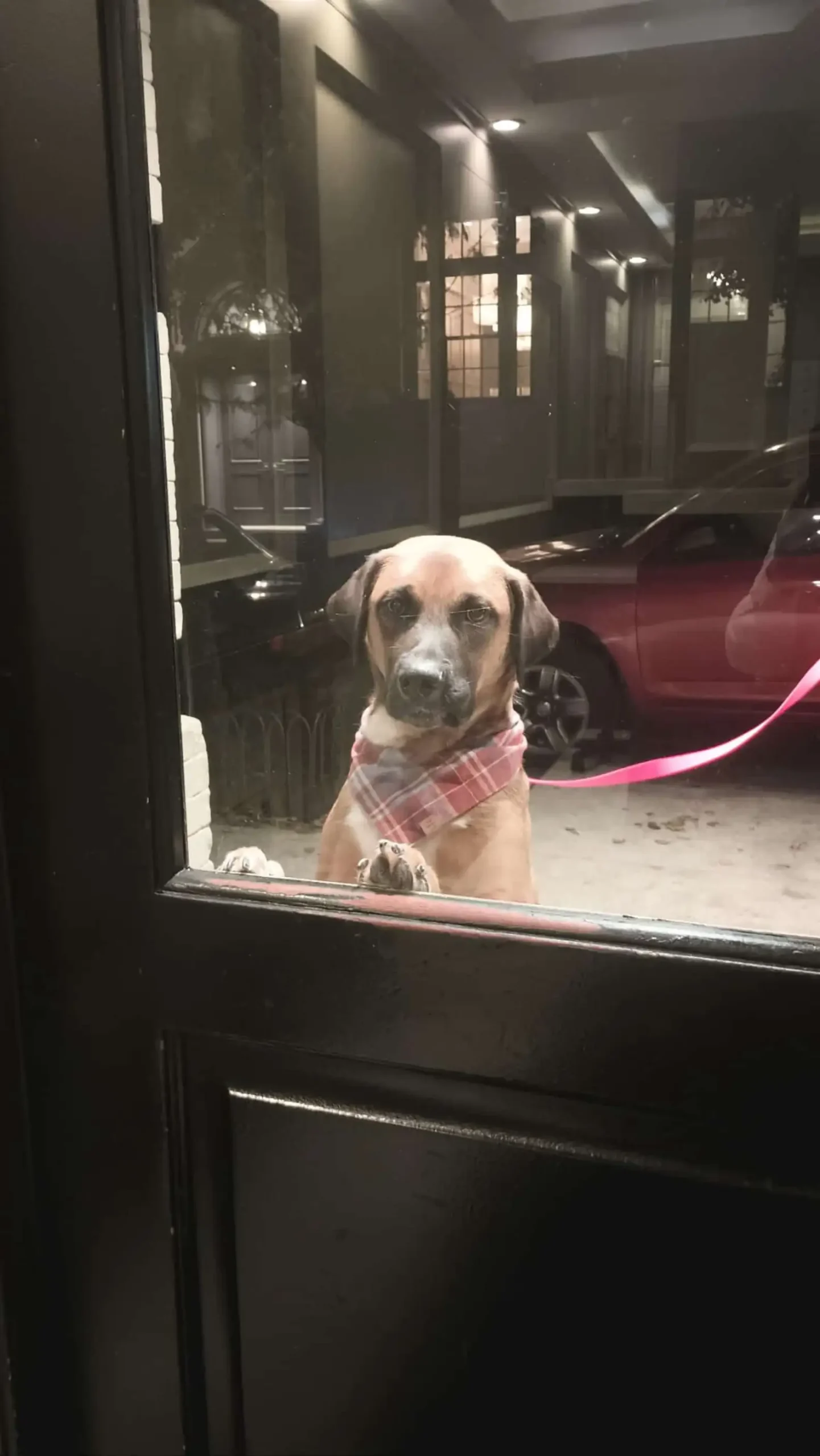 “During his walks, he will constantly walk up to random storefronts/windows and try to look through to see what’s going on and say hello to people,” Tushaus told The Dodo.