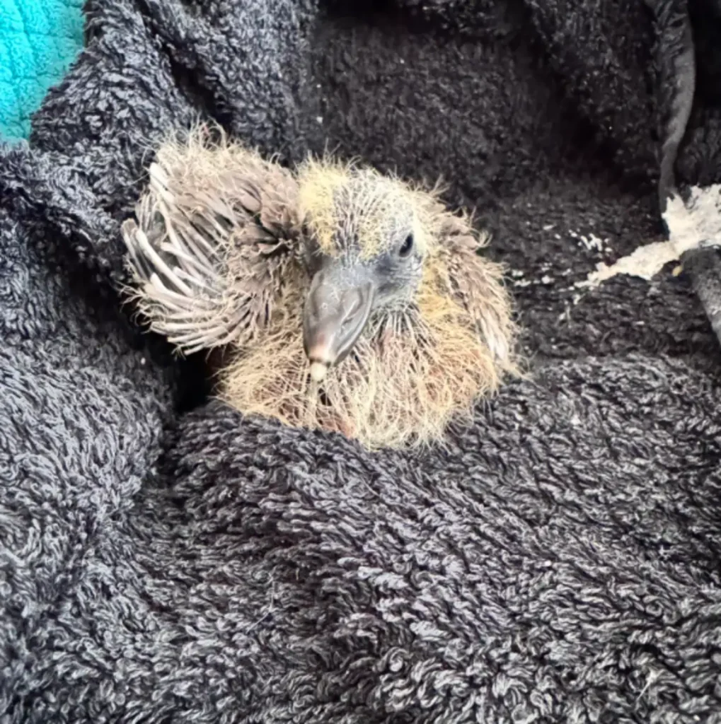 When a powerful storm rolled through Yorkshire, England, last month, it sent a tiny baby pigeon tumbling out of his nest and onto the hard ground below. The little bird lay motionless on the pavement β€” so still that a woman walking her dog thought he hadn’t survived.