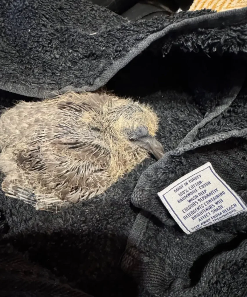 Just to be sure, she bent down for a closer look β€” and was shocked to see a faint sign of life. The chick was cold, soaked, and barely breathing, but he was hanging on.