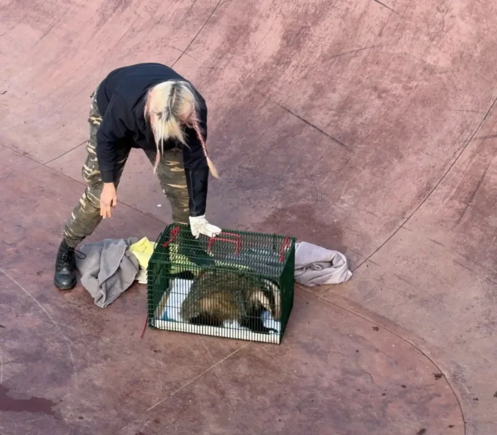 Knowing she had only one chance, Scotland acted quickly. She gently covered the badger’s head with a towel to calm her, then grabbed her securely by the scruff.