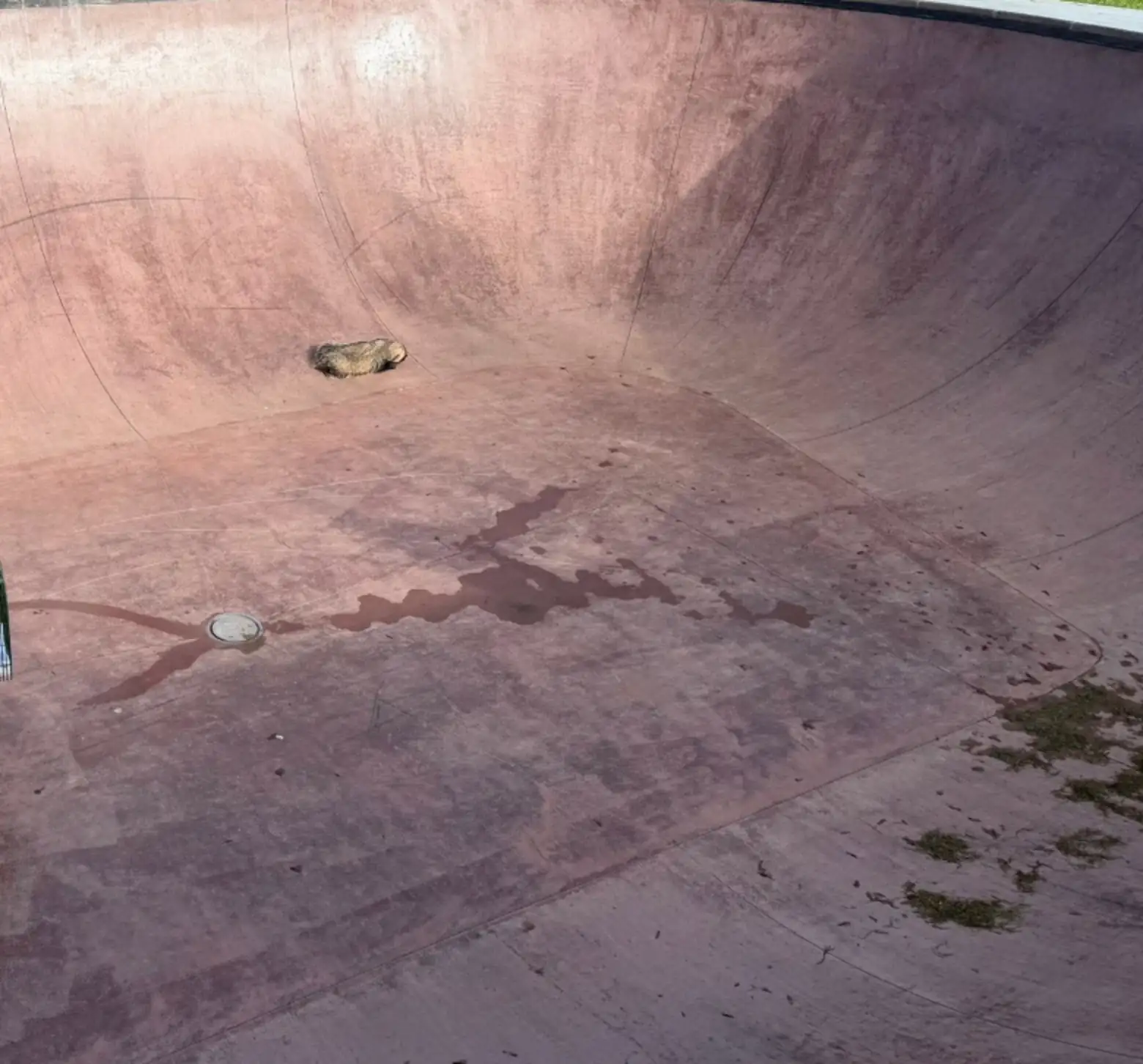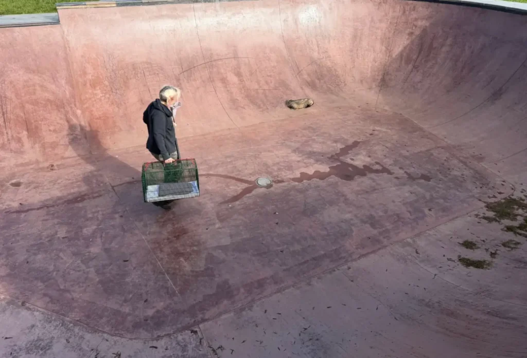 On a recent morning just outside London, South Essex city workers spotted something unusual at the bottom of a skate park bowl — a furry animal trapped inside.