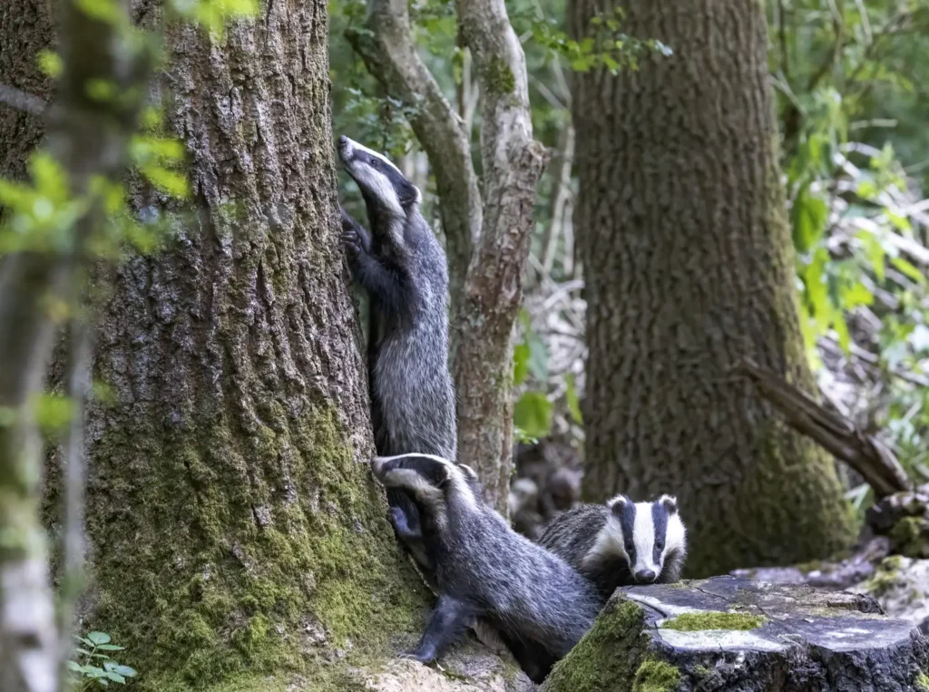 European badgers are mustelids — relatives of weasels and otters — and are quite different from their North American counterparts. They’re social animals that live in groups, digging large underground burrows known as setts.