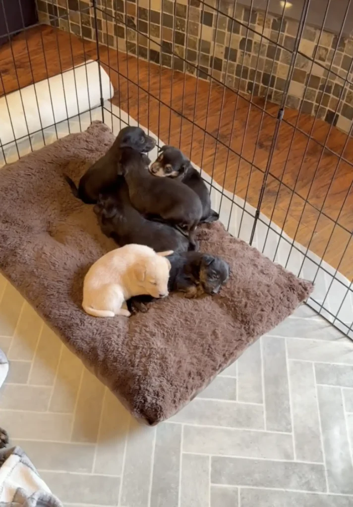 “The second she saw her puppies again, it was pure magic,” Hall said. “They scrambled toward her, tails wagging, and she just melted. She finally relaxed.”