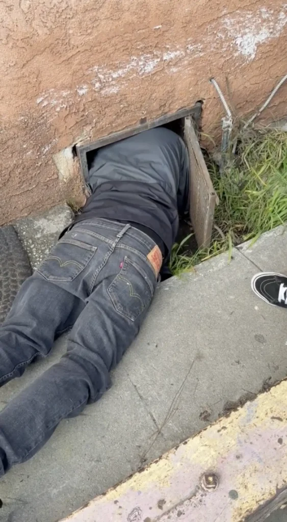 Hall and Lori searched beneath the home and spotted six tiny puppies tucked deep inside the crawlspace — much too far to reach. The narrow opening wouldn’t allow either rescuer to squeeze through. Just when they needed help most, they met Jeremy.