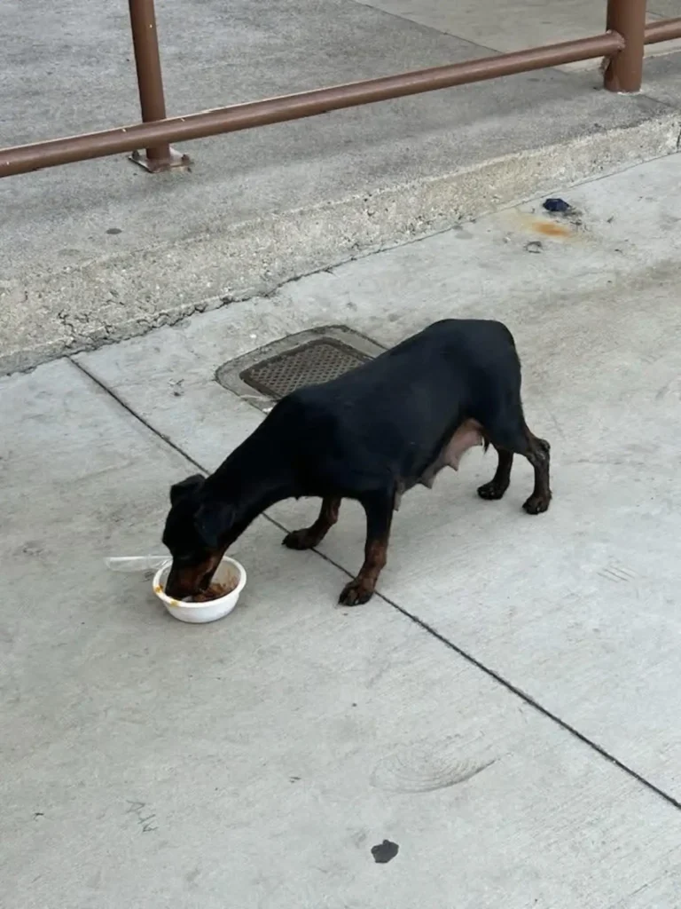 Not only was she clearly hungry, but one glance at her told them she had recently given birth. Every time she finished eating and disappeared into the neighborhood, the staff feared she was heading back to puppies no one could find.