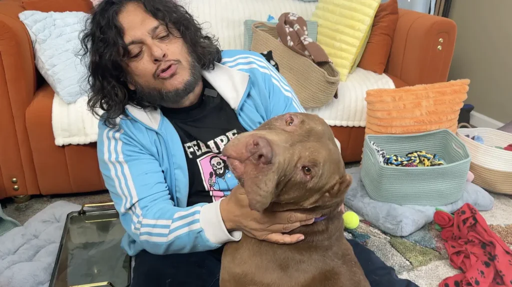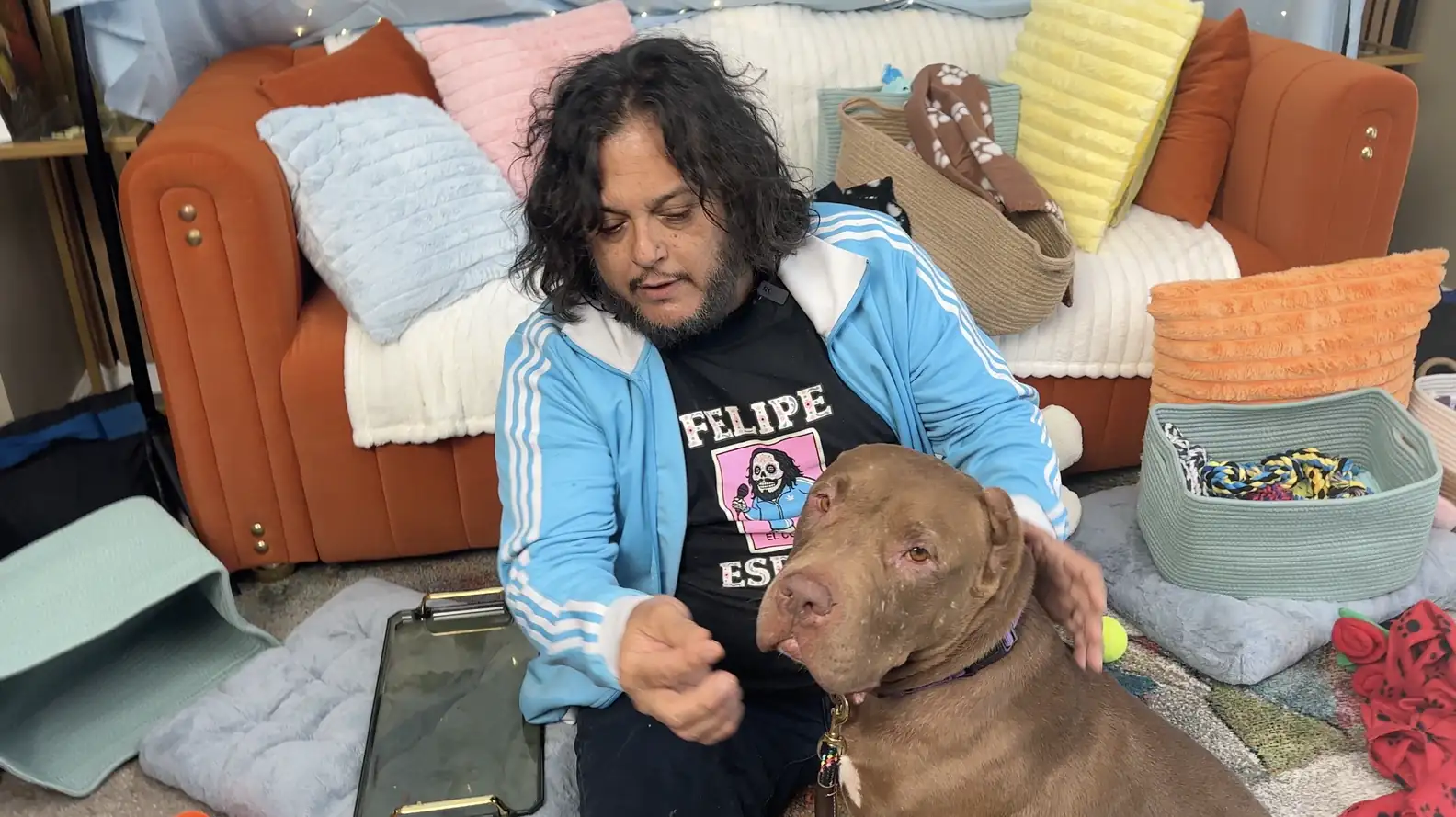 He then tried a different approach: pampering. With a soft brush in hand, Felipe gently groomed Whisper, chatting about how he used to be terrified of pit bulls.