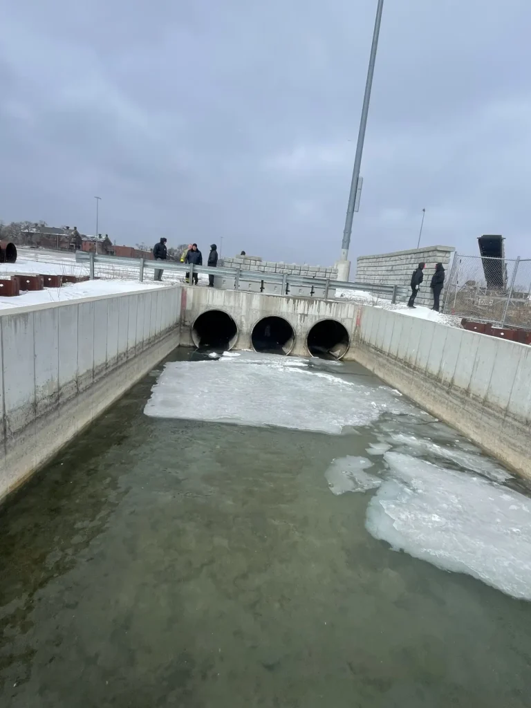 It was early Sunday morning when two fishermen set out on the Detroit River in a small motorboat, cutting through the bitter cold. As they moved along the water, something caught their eye near a culvert โ a white figure moving slowly through ice and shallow water, almost ghostlike against the frozen landscape.