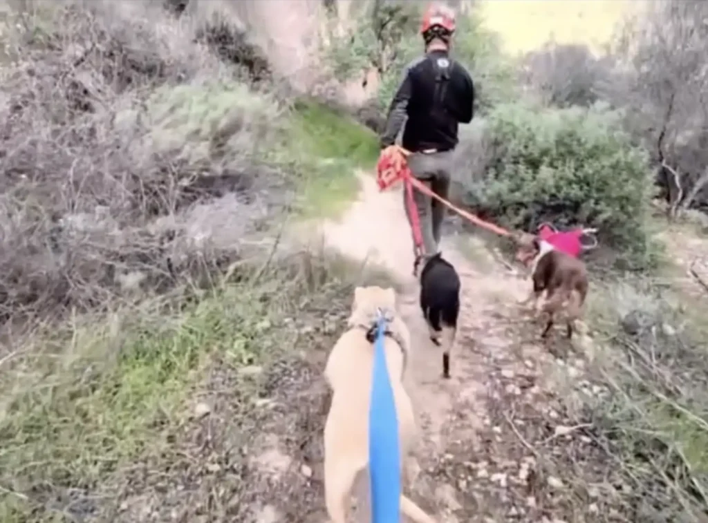 However, the other two dogs — Archie and Axel — stayed close. They nudged him, jumped beside him, and encouraged him forward every step of the way.