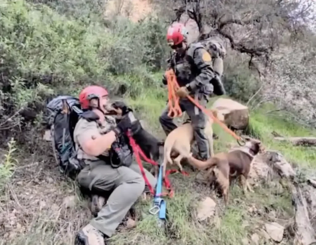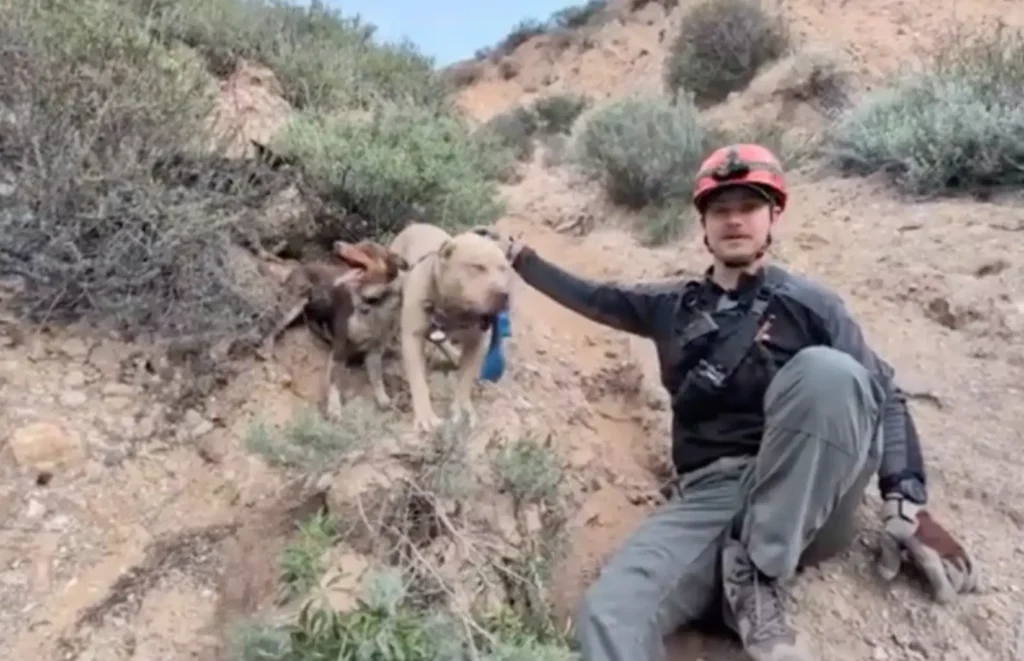 Unfortunately, Buttitta and Kaericher hadn’t brought equipment designed to rescue multiple animals from a steep mountain. Still, they carefully climbed toward the dogs.