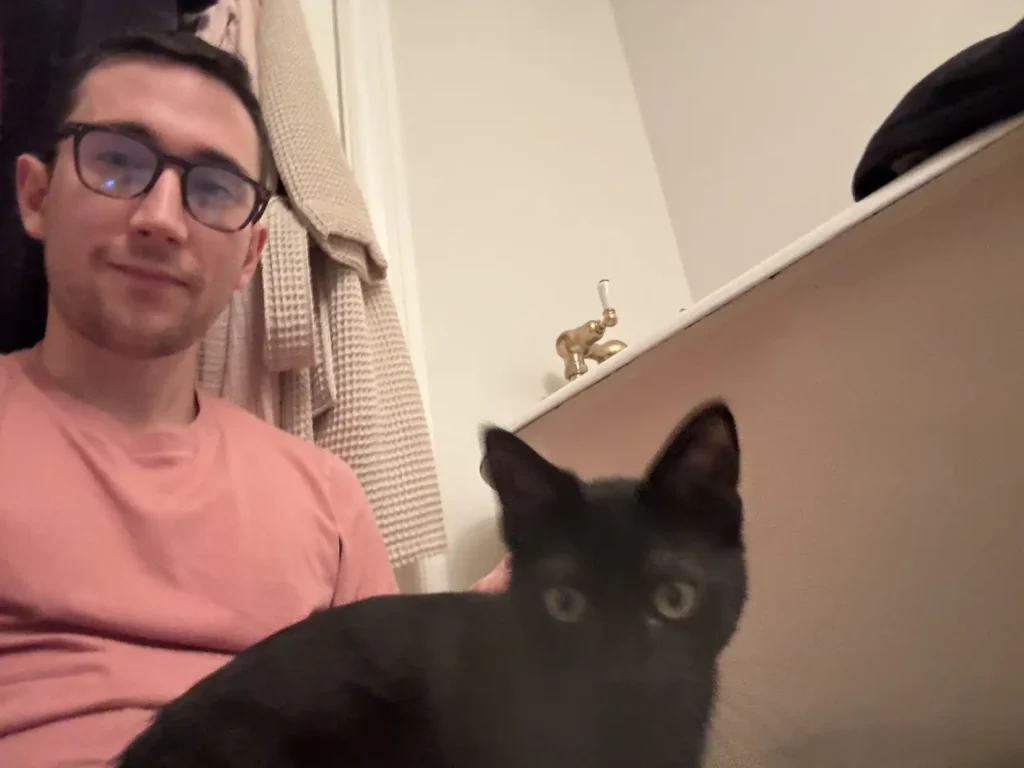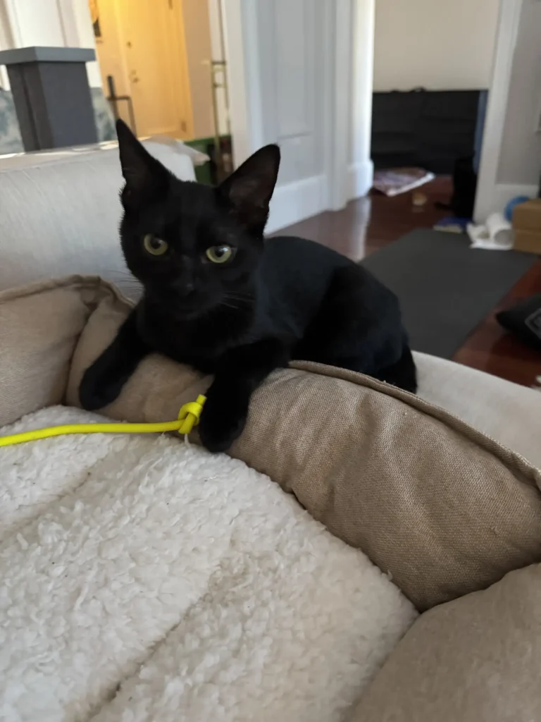 Within a week, he was exploring the apartment, initiating play with Nori, and even jumping a baby gate to meet her. The two cats quickly became inseparable—playing, cuddling, and following each other everywhere.