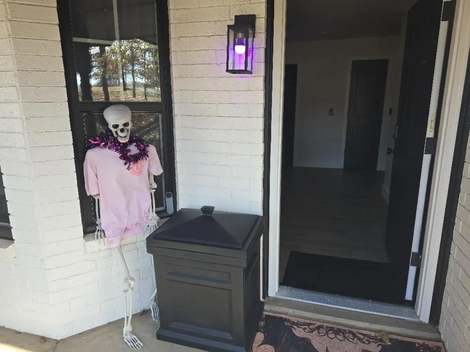 Last week in Oklahoma, Melanie Armstrong received an Amazon delivery β or so she thought. Since she wasnβt home at the time, the delivery driver decided to leave the package in the most unusual hands available: the lap of a life-sized decorative skeleton named Skelly, who permanently sits on Armstrongβs front porch.