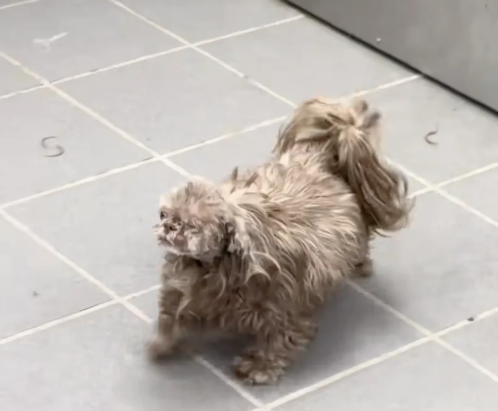 At first glance, she noticed a fluffy dog whose head looked unusually small. For a moment, she wondered if the dog simply had a tiny skull.