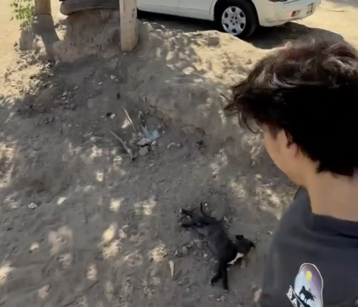 One small black puppy immediately stood out. Josh later named him Speedy. Though the little dog looked exhausted and weighed no more than about 10 pounds, he still approached Josh with a wagging tail.