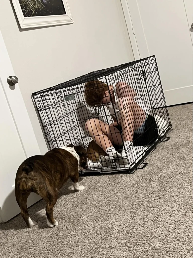 Once clean, Buddy found comfort in an old kennel the family used for training their other dogs. โHe stayed in there for days,โ Ferrin explained. โWe fed him in the kennel and kept the door open so he knew he could come out when he was ready.โ
