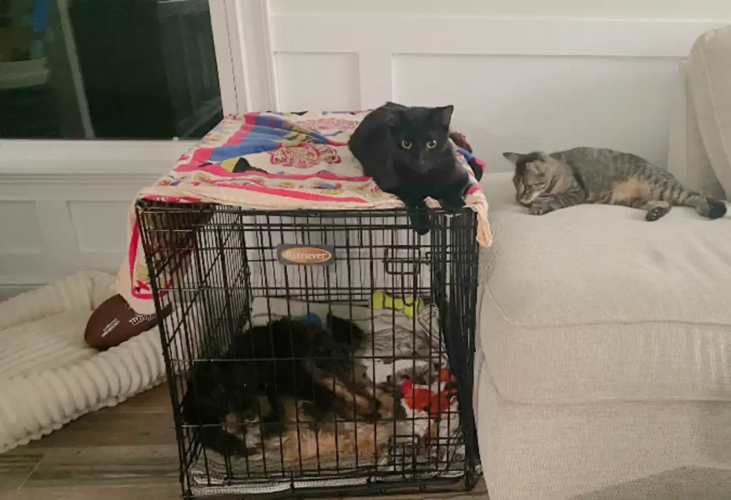 Corcoran said he is absolutely going to be spoiled. He already has two beds, plenty of toys, and lots of love. So far, his favorite toy is a stuffed alligator that squeaks. She laughed while describing how he startles himself every time it makes noise, then looks around as if trying to figure out where the sound came from.