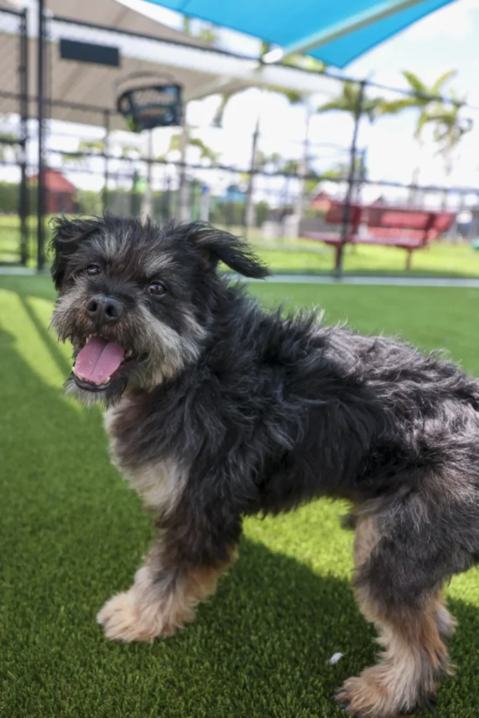 When Dari Oglesby first met Beans, a scruffy little black-and-tan dog with a noticeable underbite, she immediately worried that something might be hurting him. He had an unusual way of walking, dragging his back feet and moving with a wobble that made him look slightly off balance.