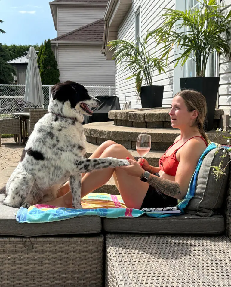 In Canada, Ella experienced some anxiety adjusting to her new environment, but the rescue team helped her feel safe. A month later, while playing in the yard, a woman passing by on her morning run caught Ella’s attention.