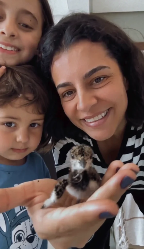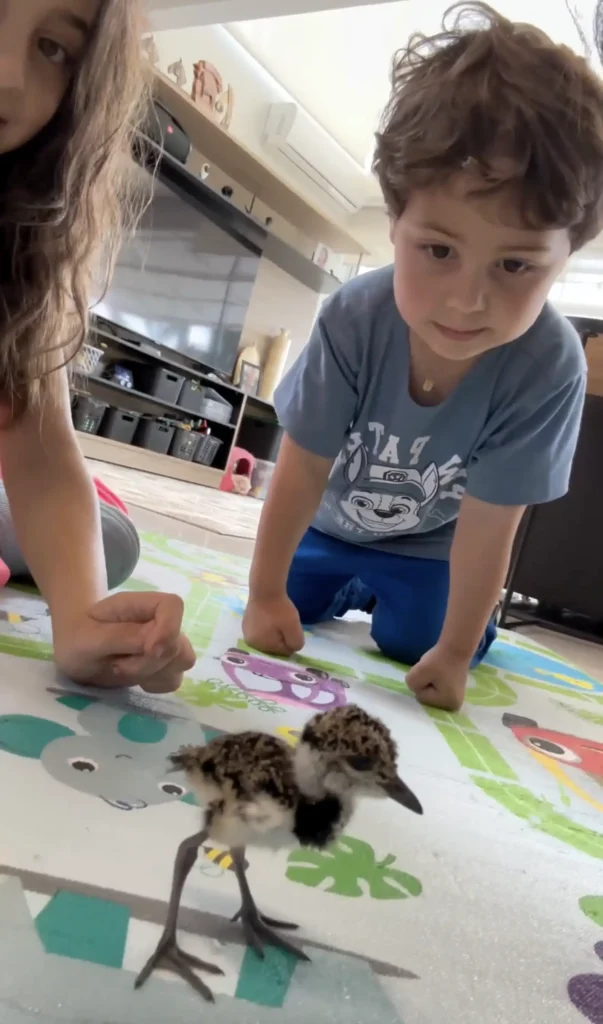 Her children eagerly helped, enjoying every moment as the tiny lapwing slowly recovered. Within about 30 minutes, the baby bird was healthy and active again.