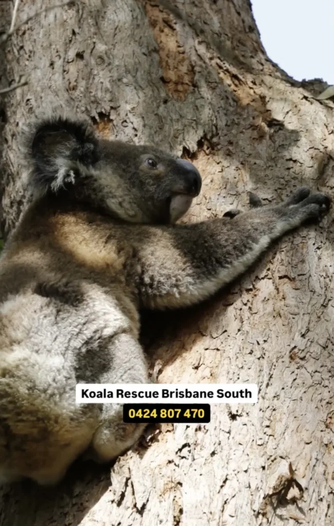 Now out of harmβs way, the frightened koala could finally relax. Koala Rescue Brisbane South was alerted and quickly took over, ensuring the little marsupial received proper care.