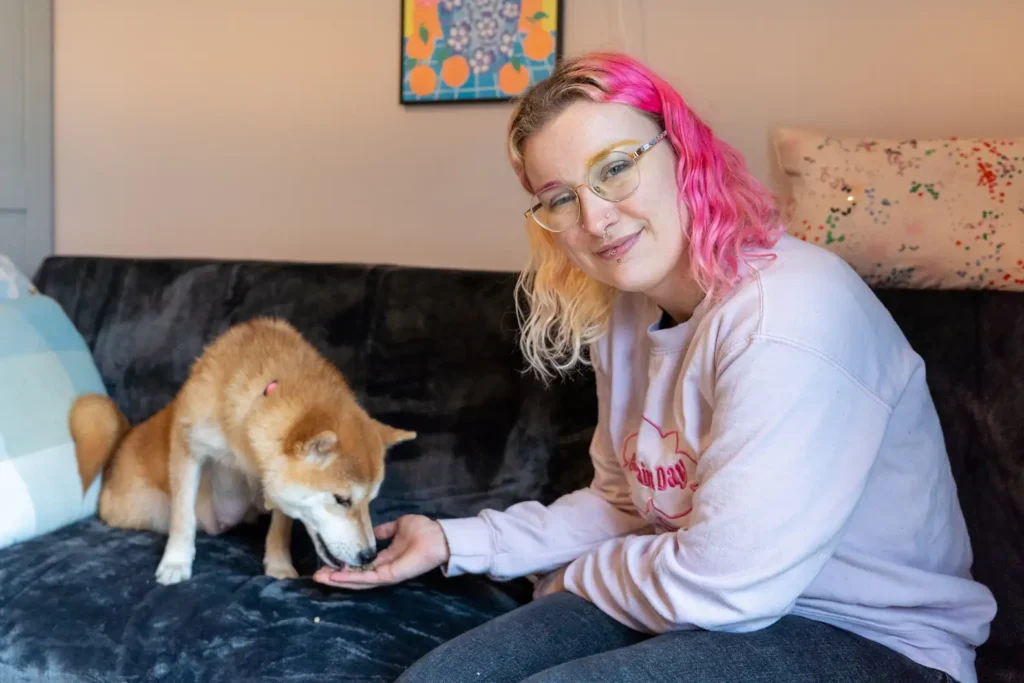 To help her build confidence, she moved in with behavior specialist Ciara Pollen, who introduced her to a calm, well-adjusted resident dog.