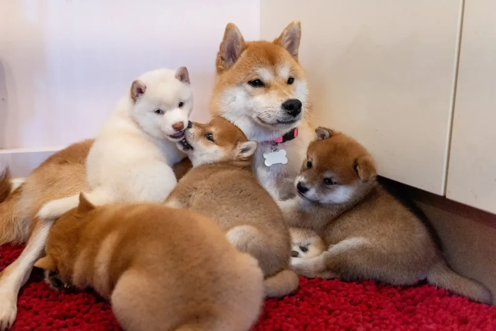 Eventually, loving forever homes were found for each member of the family. Fern and her puppy Blossom were adopted together, ensuring the devoted mom wouldnβt have to say goodbye to all of her babies. Another pup β now named Ebi β joined a household that already had a Shiba Inu companion.