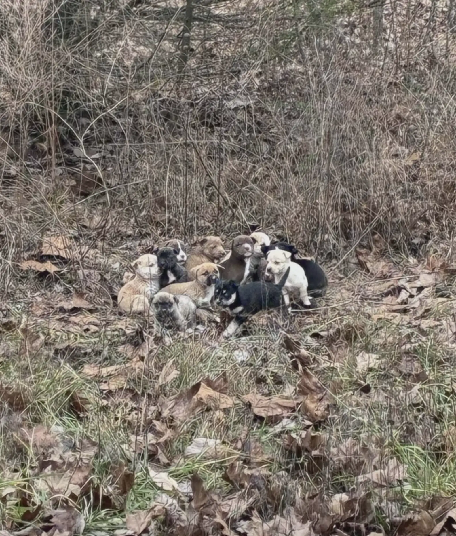 Hidden among the brambles was a group of 16 defenseless puppies, huddled tightly together for warmth. The puppies appeared abandoned, exposed to the elements, and clearly struggling to survive.