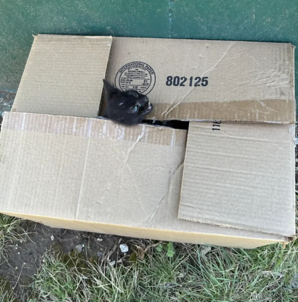 Realizing something was wrong, he called animal control and codes enforcement officer Emily Hart, who hurried to the park to investigate. As she approached the box, she saw a tiny black ear poking up from inside. Then came the sound that confirmed her worst fear.