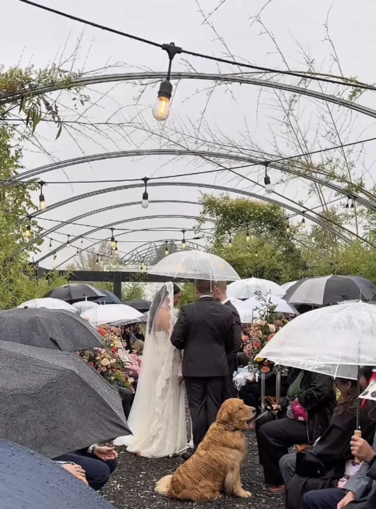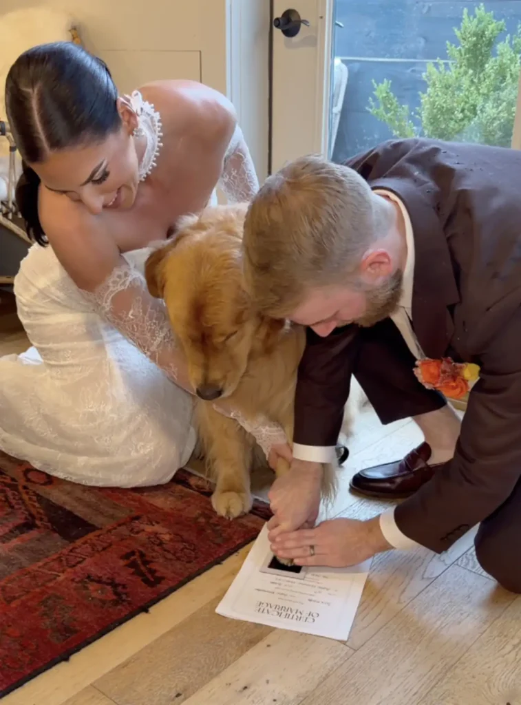He seemed proud of the moment, tail wagging as if he knew he’d just helped his parents tie the knot.