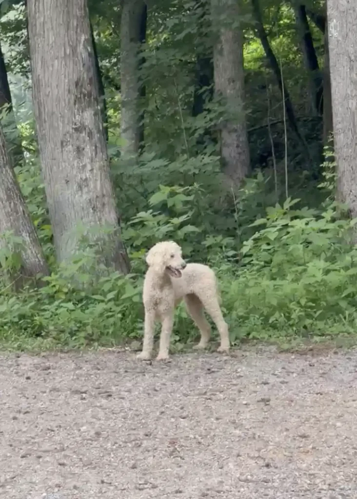 But as she rounded a bend, her heart sank. Lying in the middle of the road were two adult poodles — one black, one golden — frightened and alone, with no sign of their owner. A concerned passerby had alerted Luck earlier that day, but seeing the scene in person confirmed the worst.
