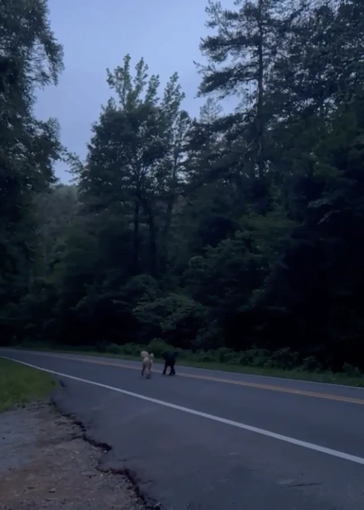 For hours, the rescuers tried every trick they knew, but the poodles stayed just out of reach, darting down the road whenever they got too close. As darkness fell, Luck faced a painful choice — leave for the night and return at dawn, or risk scaring them further into danger. Reluctantly, she decided to return the next morning, her heart heavy with worry.