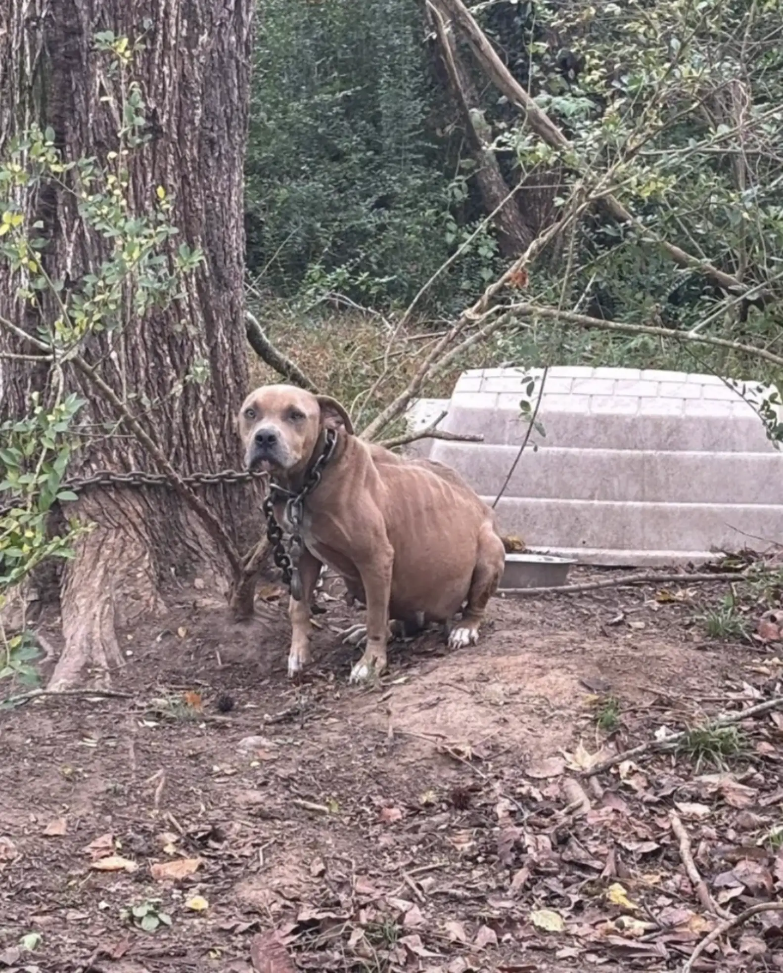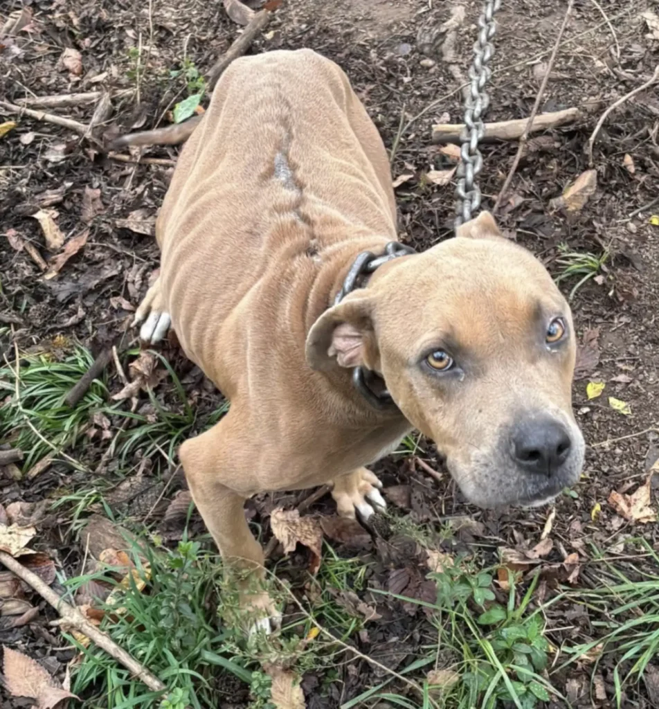 Down a quiet back road in the wooded outskirts of Staunton, Virginia, a dog later named Hope found herself in a heartbreaking situation. Pregnant, hungry and alone, she had been chained to a tree with a heavy metal collar, unable to escape or fend for herself. She desperately needed someone to notice her.