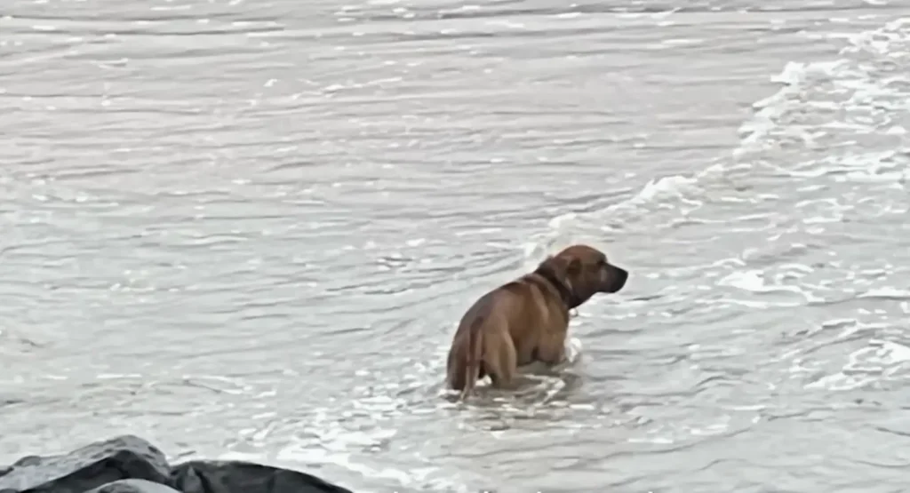 Every time she arrived, the dog was out in the water, staring toward the horizon.