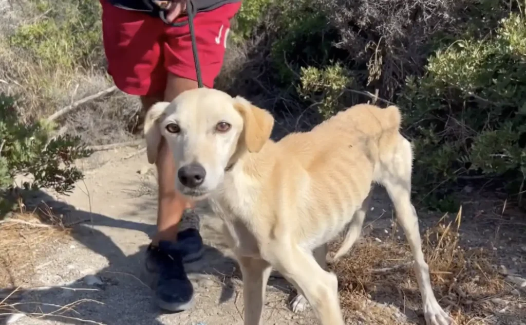 The moment Takis arrived, the sight before him was heartbreaking. The dog was painfully thin, little more than skin and bones, and so weak that it looked as if she had almost surrendered to exhaustion.