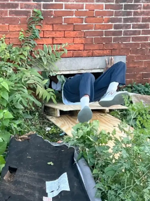 Colleen Bell, founder of GoodBoy Dog Recovery, spotted the pup walking down an alley near run-down row houses in Chester, Pennsylvania. Bell hoped Lucky would follow the scent of food into one of her humane traps. Instead, the dog vanished behind the abandoned buildings. Moments later, Bell heard frantic yelps.