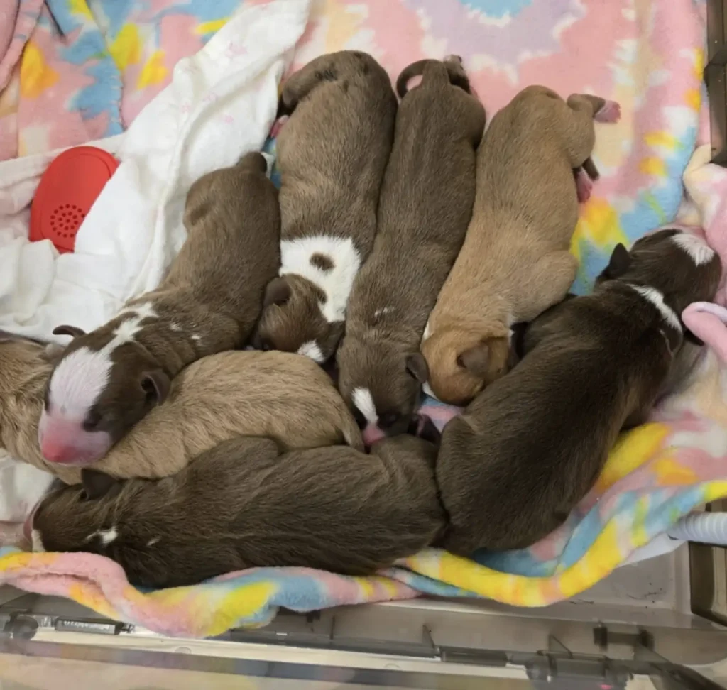 Curious and concerned, the Good Samaritan looked inside and found seven tiny newborn puppies, barely a few hours old. Without hesitation, they gathered the box and rushed the fragile litter to the Charles County Animal Care Center.