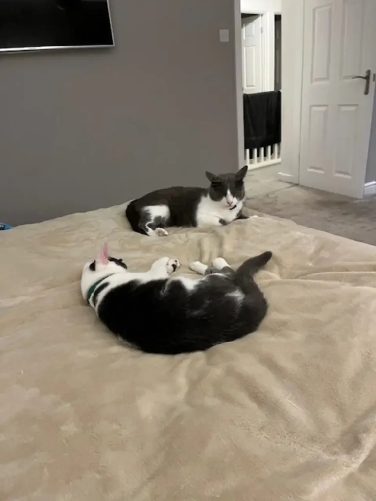 โI remember seeing Sidโs little face on the RSPCA website and thinking he was absolutely beautiful,โ said his adopter, Kate Cooper. โIโve cared for cats with medical needs before, so I felt ready. Heโs such a sweet boy โ he loves playing with Echo and Froska, and theyโre often curled up together.โ
