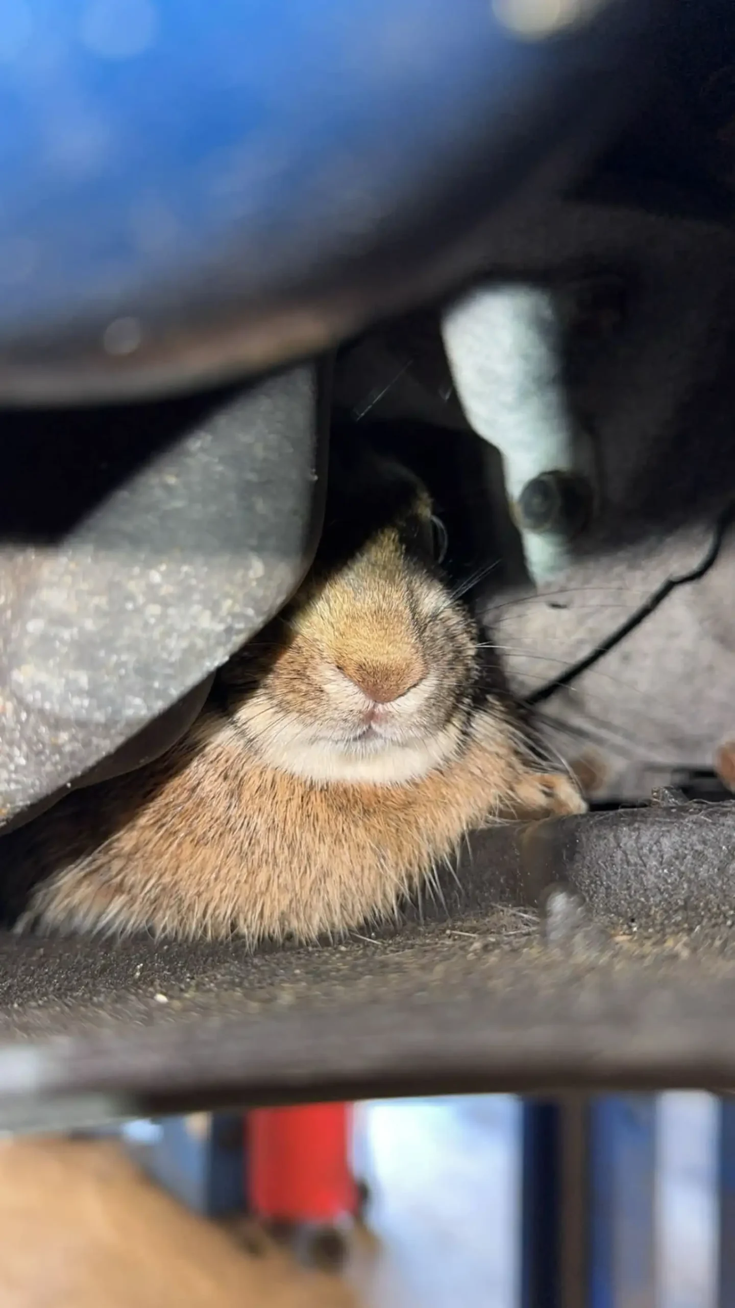Tucked into the vehicle’s undercarriage was a cottontail rabbit, seemingly having hitched a ride in search of warmth or a quiet hiding spot while the car sat parked. Without hesitation, Tannous set the service aside and shifted into rescue mode.