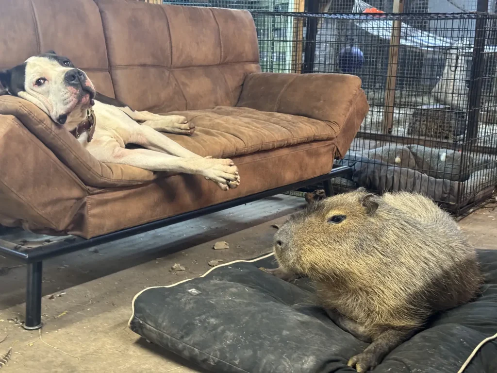 Capybaras arenโ€™t known for jumping fences โ€” and Georgeโ€™s story explains why. Though they donโ€™t know his exact age, McKenna learned that George had been raised as an exotic pet in a home with dogs. When authorities later required his owner to install a swimming pool and they couldnโ€™t, George was surrendered to the rescue in 2023.